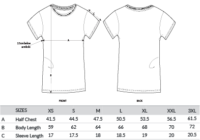| XS | S | M | L | XL | 2XL | 3XL | |